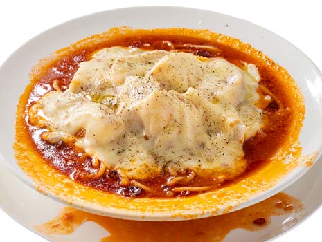 スモークチーズの香り豊かなチーズがたっぷり乗って、通常のガーリック3倍を使用したトマトスープパスタ。 ※一部店舗での販売です。